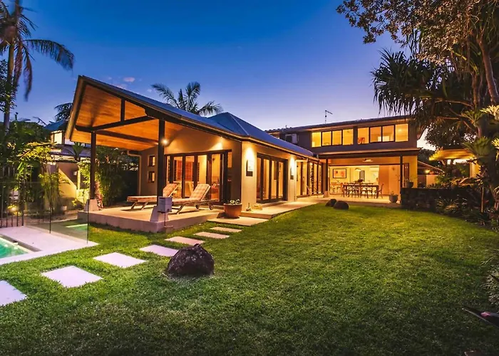 Barefoot At Tallows Beachside Escape In Suffolk坐落于住宅区,距离拜倫灣有不到10分钟车程。别墅还配备游泳池,旅客可以在水边享受一整天的放松。